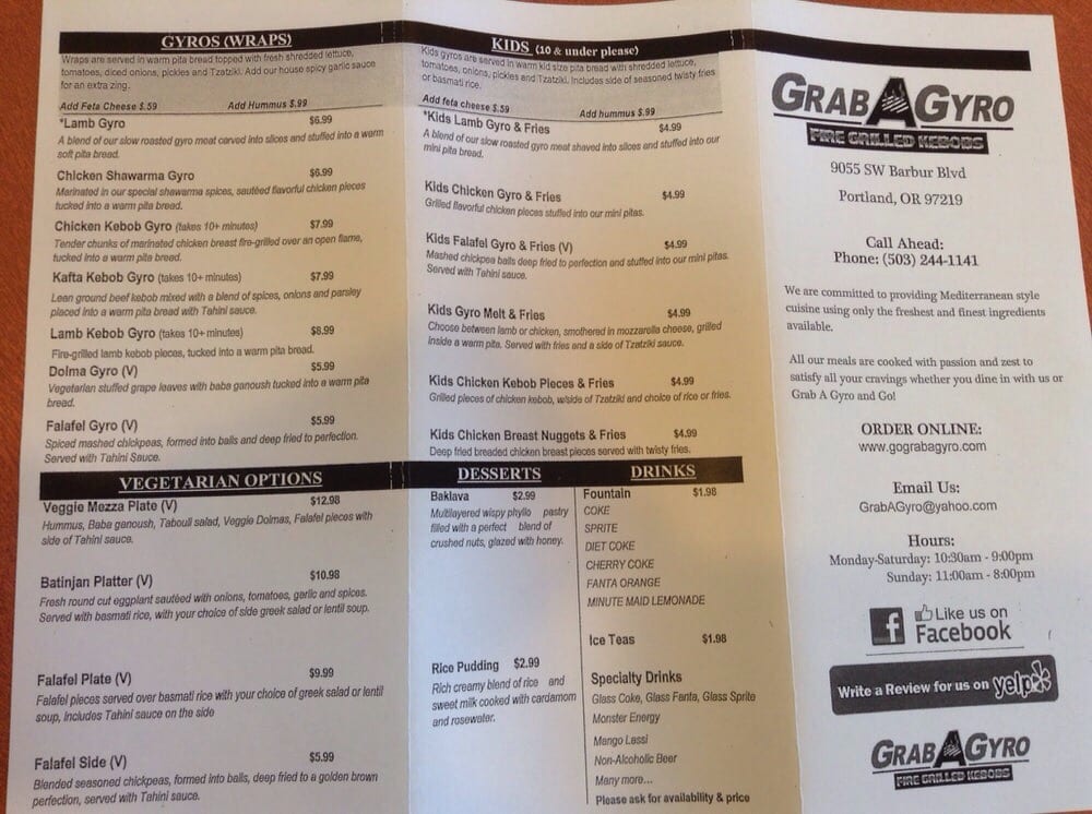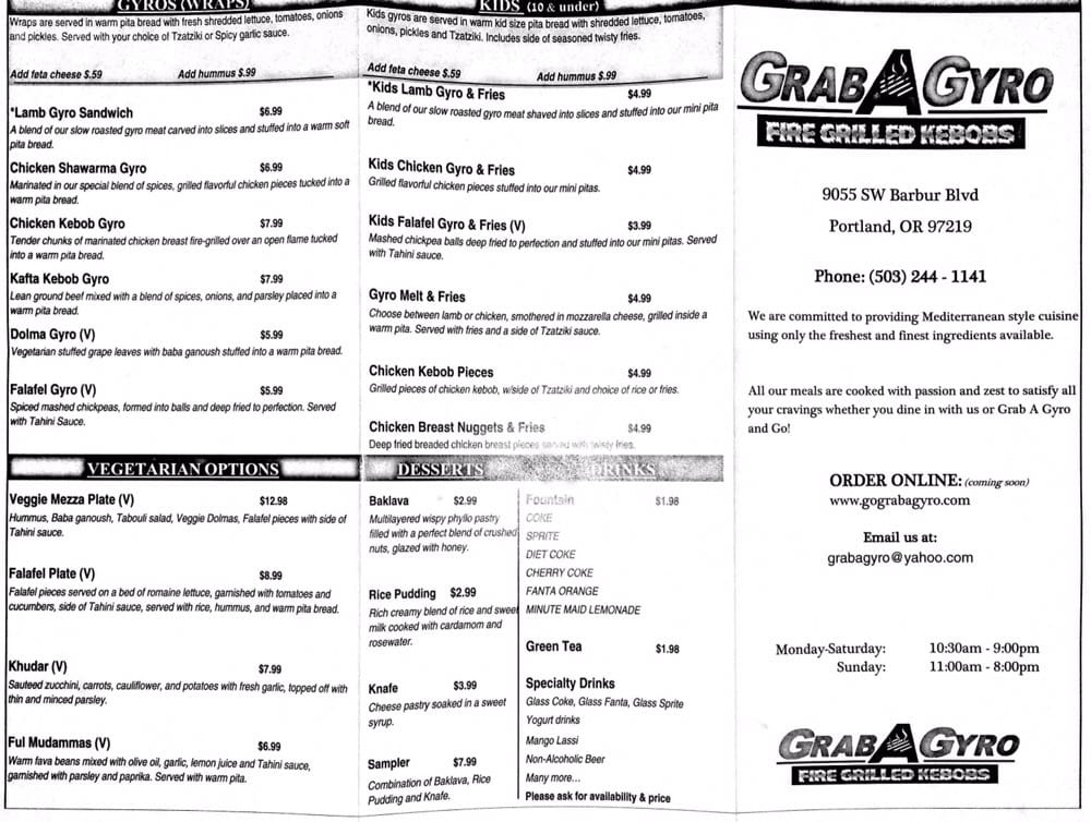 Welcome to Grab A Gyro, your go-to spot for mouthwatering Mediterranean cuisine on Portland's Barbur Blvd. This Halal-certified eatery offers a vibrant menu that celebrates the bold flavors of the Mediterranean. Guests rave about the generous portions, with standout dishes like the juicy lamb gyros and perfectly seasoned chicken kebabs that promise a satisfying experience.